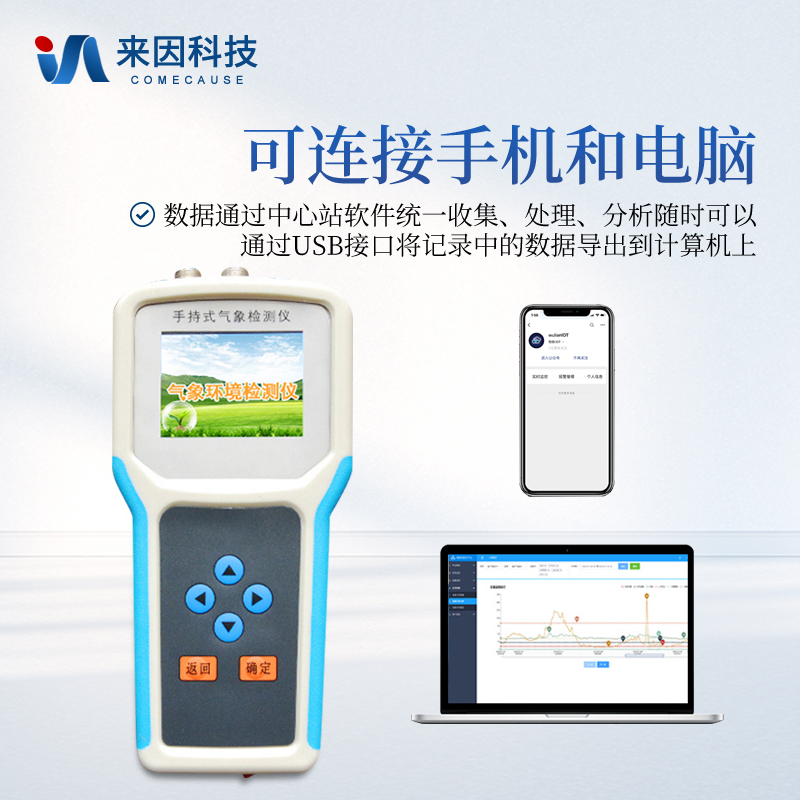 手持式智能农业气象环境检测仪是我们专门针对农田、草场局部小尺度环境设计的,对与植被和农作物生长密切相关的土壤、水气等环境参数监测的农田小气候站。它主要观测与农业相关的空气温度、空气湿度、光照强度、二氧化碳浓度、露点温度、光合有效辐射、土壤温度、土壤水分、土壤盐分、土壤PH、风速、风向等12个环境参数气象要素,为农业科研、农业生产等提供良好的支持。