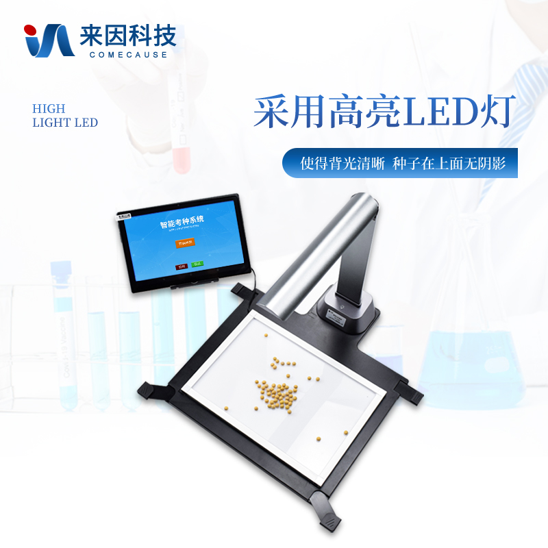 简要描述: 智能考种仪IN-KZ01由三部分组成:1600万高拍仪、背光装置和装有嵌入式软件的平板。背光装置采用的是高亮LED灯,外边框使用铝合金材质制成。软件采用先进的图像处理技术,根据距离变换原理、形态学、凸包检测等技术综合设计的一款嵌入式软件。该设备主要应用在农业领域的田间作物测产及考种等方面,通过高拍仪拍摄的照片,软件自动计算种子数量,种子的面积、周长、长度、宽度、长宽比等数据,根据天平所得的重量与种子的数量自动计算出千粒重。