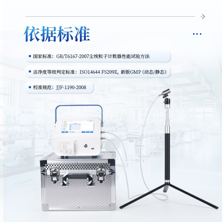 智能尘埃粒子计数器,其置信度测量检定标准按照国标GB/T6167-2007和校准规范JJF1190-2008规定的条件,对净化级别进行自动判断。一次采样可同时测得六个粒径通道的尘埃粒子数,并同时显示六个粒径通道粒子的数目及其变化情况。